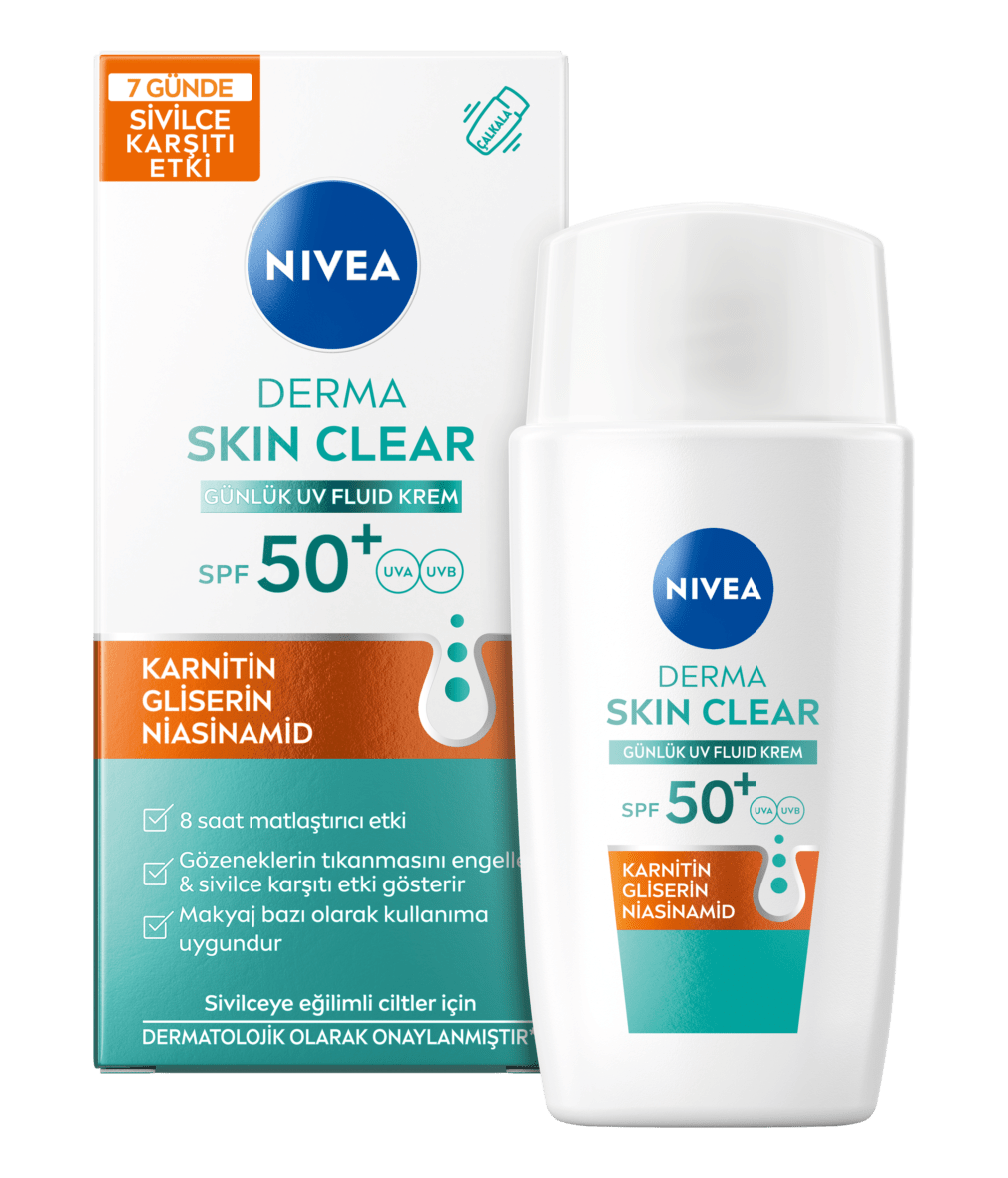 Pürüzsüz bir cilt için NIVEA Derma Skin Clear Günlük UV Fluid Krem ile tanışın! Karnitin, Gliserin & Niasinamid içeren formülü sivilceye eğilimli ciltler için geliştirilmiştir & makyaj bazı olarak kullanıma uygundur. Gözeneklerin tıkanmasını engeller & matlaştırıcı etki sağlar.